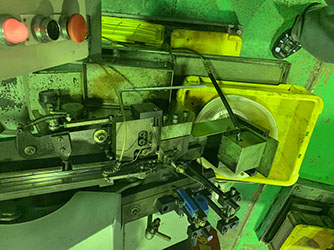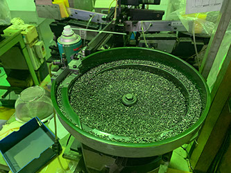 当社は、汎用的なネジではなく、個別設計された小型ネジやリベットに対応した製造設備を保有しております。転造機をもつ18の製造組立ラインは、短納期、大量生産、高いコストパフォーマンスを実現します。他の5台の機械では、多段ねじおよびリベットも製造できます。 また、シュートを流れている間に、自動でワッシャーを軸に入れる(マジックフィッテング)のノウハウを持っている為、当社は高いコスト競争力を持っています。
